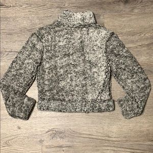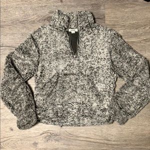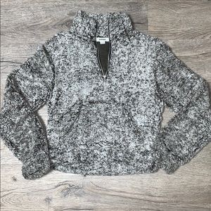 WORN ONCE/LAUNDERED ONCE - Garage x-small light and dark gray fuzzy quarter zip pullover. Has a pocket in the front.