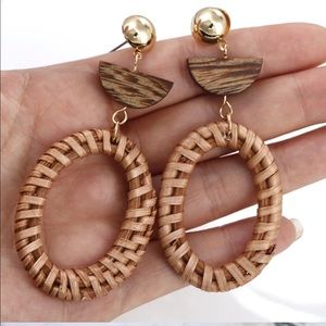 Wooden Straw Weave Rattan Braid Drop Earrings. New boutique items. Trend 2019! Similar to Anthropologie earnings (currently listed on their web-site).