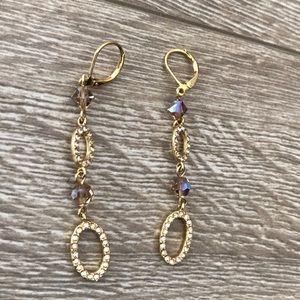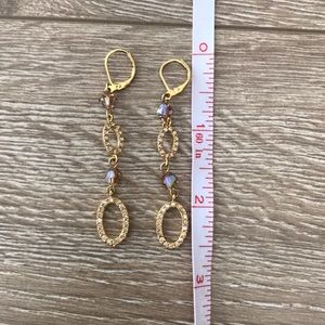 Bought at Anthropologie retail store to wear with a specific dress years ago and never actually worn. Gold tone with Crystal details. Beads take on light and change colors. See measurement from picture.
