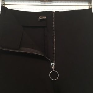 Black pants from ZARA Trafaluc Collection with green and white side stripes. Front circle zipper, very stretchy material.