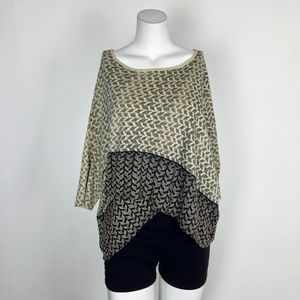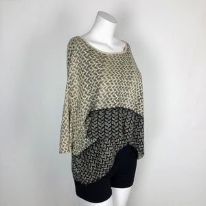 MOTH Tiered Beaded Printed Sweater Top 3/4 Sleeve