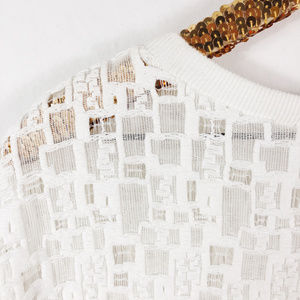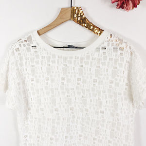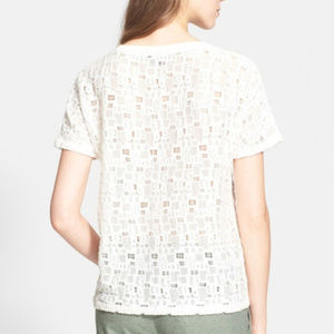 VINCE Women's Lace Tee Top Gauzy Textured Sheer Embroidered Crew Neck White XS