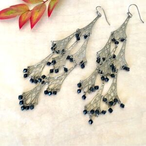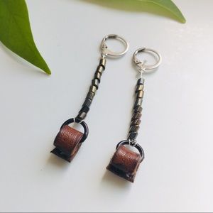 SOLD Leather and Gunmetal Beaded Slinky Earrings