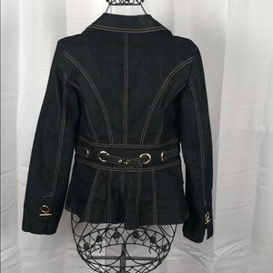 Bisou Bisou Denim Jacket Women’s Small with brass buttons! Gathered with a brass buckle in back