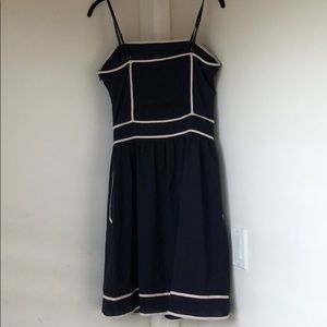Any activity your afternoon may fill up with will be framed with the ivory style that this bordered dress offers! The adjustable straps, comfortably smocked back, and trimmed pockets of this lined frock are precisely what you’d always wished would decorate a free day, and as you sway its navy hue all about town, these features don’t go unnoticed. With crimson clogs, an off-white cardigan, and an antique necklace, this side-zipped dress makes your experience borderline euphoric!