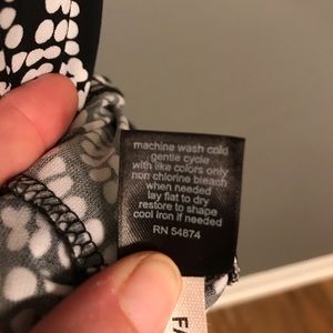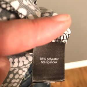 Side Shoulder Tie. B&W Circle Dot Patterned Blouse. Hard to wrinkle. Stretchy & Flowy. Soft Material. Like new condition. 95% Polyester 5% Spandex.