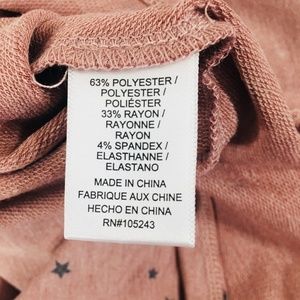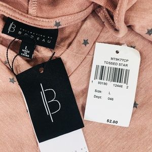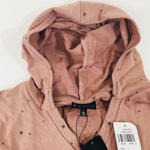 Soft hoodie from Bobeau in pink with a star print, size large. Long sleeve with a notch neck and curved hem.