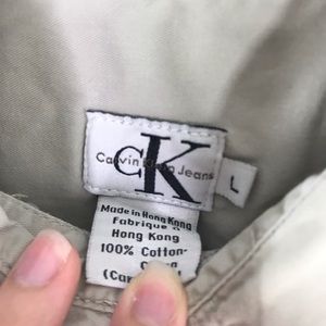 Chest 23 inches length 29 inches laying flat VTG vintage Calvin Klein Tan Button Up Shirt L Embroidered Spell out Calvin Klein on the pocket Good condition VTG Calvin Klein Tan Button Up Shirt L Embroidered