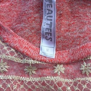 *Coral Long Sleeve Knit Shirt with beautiful lace/mesh design, Size medium