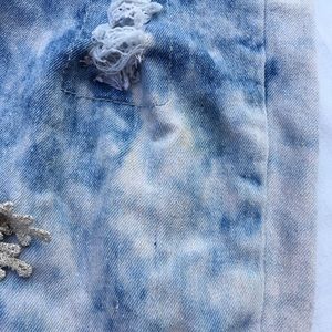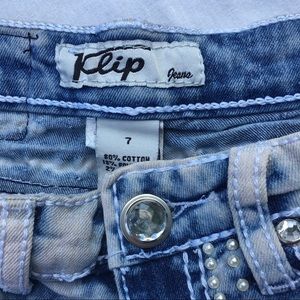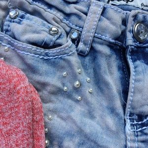 *Distressed Jeans with plastic pearls( has a spot as shown in picture), size 7