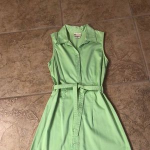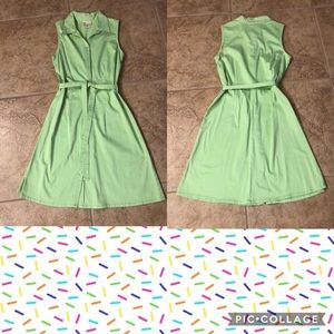 Faded Glory button front dress. Size 10.. Button front. Self fabric tie belt. Lime green color. Above knee length. Excellent condition