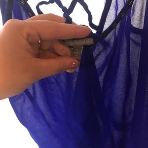 Beautiful shear royal blue top size medium . It has black beads that make it dressy and a strappy back !