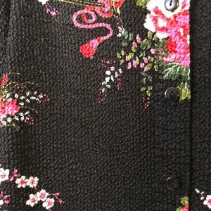 BALA BALA Floral Top. Textured fabric: 100% poly. Padded shoulders, button down front. Great condition, no flaws found. Color may vary depending on the device used. Approximate measurements taken laid flat.