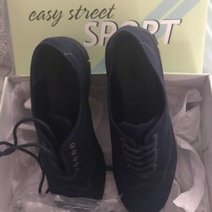 Never worn. Navy blue suede shoes. Great with jeans or navy work pants.