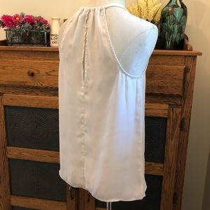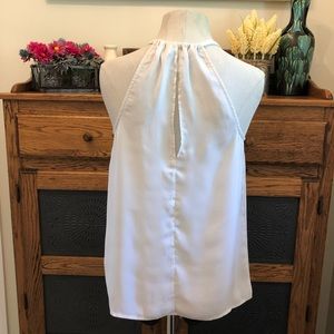 BB Dakota sleeveless halter tank/blouse with center key hole opening, adjustable ribbon tie. New without tags. Never worn. 100% polyester.