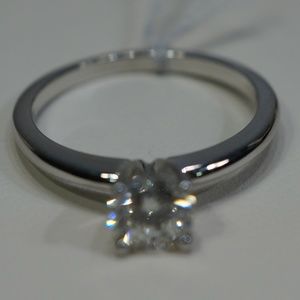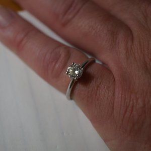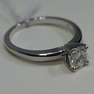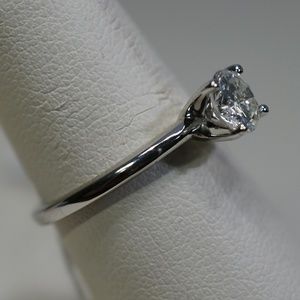 NWT 14kw gold solitaire engagement ring with a .77 carat round brilliant cut diamond. Ring is a size 6 1/2.