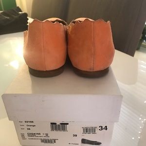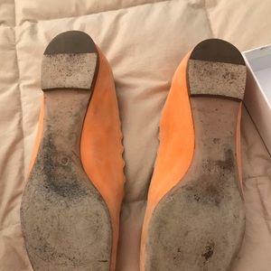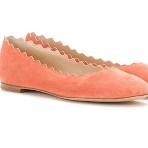 These Chloé Lauren flats are in great used condition! Only worn a few times, ended up being a little bit too large for me which is why I’m selling. Sherbet orange suede for a great pop of color! Looks great with neutral outfits! Super soft suede, like butter. Only a few marks as shown in the pictures. Comes with the box.