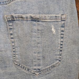 Excellent used condition. 5 button for distressed shorts with a high waist. 5 pockets. Measurements are approximate. W:25"(with stretch), R:11"(very high), & L:11.5"(front) 12"(back)