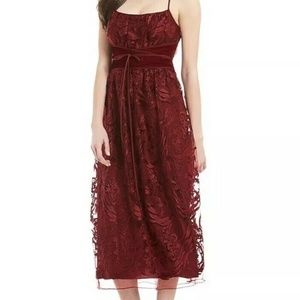 🌷MSSP Burgundy Floral Lace Midi Dress Garnet