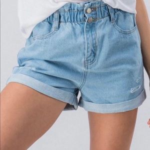 Light weight, front zip, side zip pocket, and pull string waste. True to size!