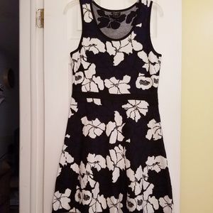 Ann Taylor Black Navy Blue and White Knit Dress