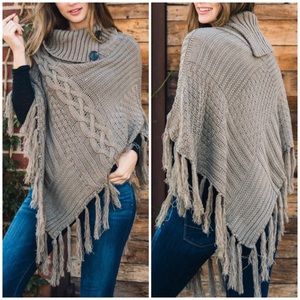 High Neck Multi Tasseled Poncho