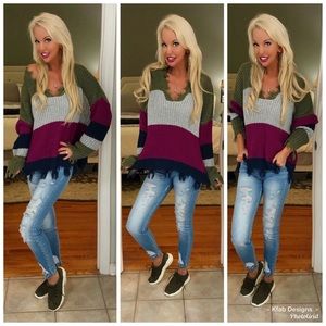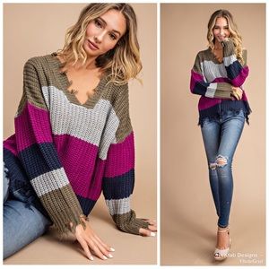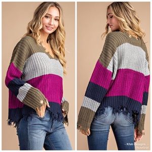 🥰LAST 1! DISTRESSED STRIPE COLOR BLOCK SWEATER