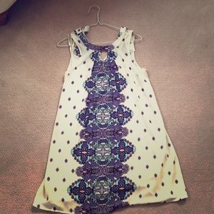 This is a dress from Dry Goods! It is cream and purple! It has a cream dress attached underneath! It has never been worn!