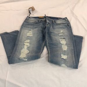 Silver Jeans “Tuesday”distress skinny leg jeans, stretch low rise, NWT