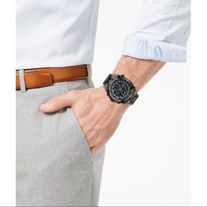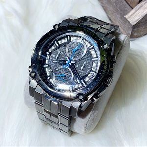 •Chronograph dial w/luminous blue accents, 3 hands, 4 sub dials, date window