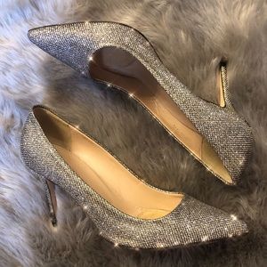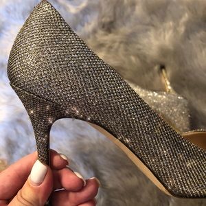 Worn 2x's only! Sadly feet grew after pregnancy. These are too gorgeous to keep hidden! These glittery metallic heels add something special to any holiday outfit. With a just-right heel height and a perfectly pointed toe, they're classic and special at the same time. The fact that they're made in Italy is just the icing on the cake.