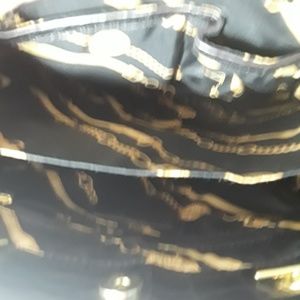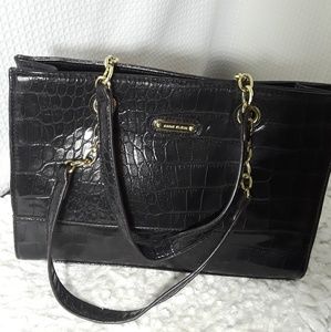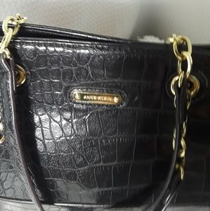 Anne Klein Black Leather Look Handbag Purse With Partial Chain Handle. This is mid size Bag, Over the Shoulder. In great Pre-owned condition