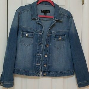 Great quality. Stretchy denim. 21 inches from shoulder to front hem.