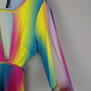 Cute bodysuit with cutouts on the sleeve and either side of the waist. Size M. Has small hole in right side near sleeve seam.