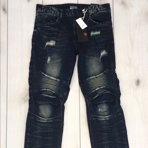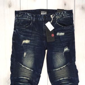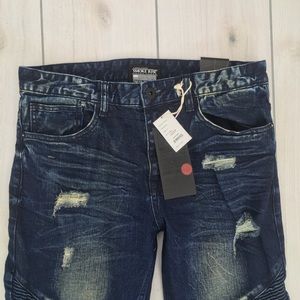 Smoke Rise Distressed Wash Slim Fit Biker Jeans