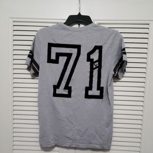 Grey with Black True Religion Tee Shirt in excellent condition. A little fading under the armpit otherwise no issues. Measures 24in from shoulder to bottom and 18in from armpit to armpit. It's a small but can fit if you wear medium