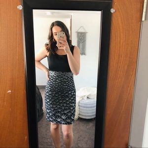 H&M Cocktail Pencil Dress. Size 6. Beautiful dress, black with a silver design. Zips up the back. Great condition. Perfect for work, date night, weddings, homecoming etc. (FYI dress does run small, fits more like a 2)