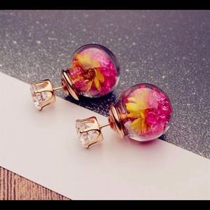 Swarovski Crystal real dry flower 2side earrings