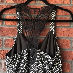 Black and white summer dress with crochet t-back like a butterfly design