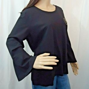 TOMMY HILFIGER Logo Womens New 1451 Black Bell Sleeve Sweatshirt Top XL