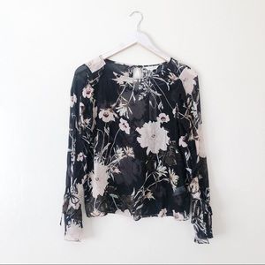 Lucky Brand Floral Pattern Ruffle Sleeve Blouse