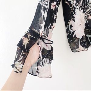A floral pattern and ruffle sleeves makes an ethereal blouse that's the perfect addition to any wardrobe. Fit: this style fits true to size. - Boat neck - Long ruffle sleeves with tie cuffs - Back keyhole with button-and-loop closure - Floral pattern throughout - Unlined; sheer construction - Curved hem - Imported