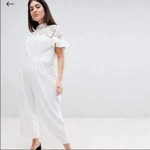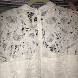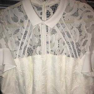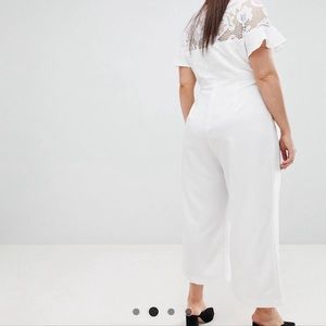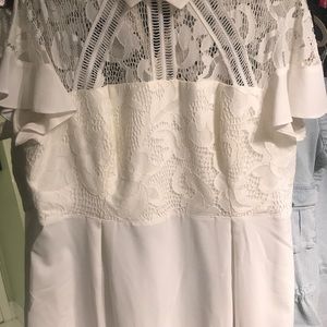 Gorgeous, white jumpsuit with lace top, sleeves and wide cut pant legs. High quality, breathable fabric. Zipper closure, perfect condition. Beautiful for any occasion! ✨ Excellent used condition, no stains or damage.
