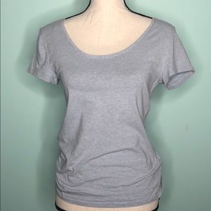 Very light sky blue all over, scoop neck, fitted tee, soft material little bit of stretch, barely used