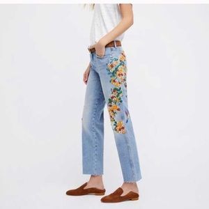 Free People embroidered floral girlfriend jeans 31