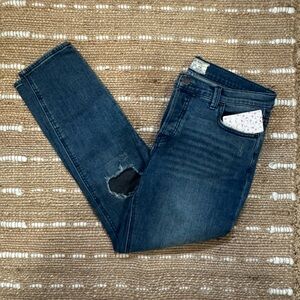 New without tags, So unique, purchased at a boutique, and took the tags off, but now it doesn’t fit. Size Medium, cream, measures about 21.5” across the chest laying flat, about 26” long in front and 28” in back shoulder to hem. The sleeves on this top are gorgeous! Adjustable corset sleeve trimmed floral crochet lace, bell sleeves, delicate trim, and a soft crepe material, rayon. Cute paired with dark denim skinnies & booties.