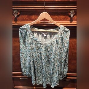 Blouce Sans Souci, size small, never worn. One tiny flaw on "back" of right shoulder, see close up pic #7. Does not effect beautiful aesthetic of this garment. Soft feel... EC.