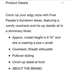 Free People Sundown Cowl Neck Stretchy Mini Dress New with Tags