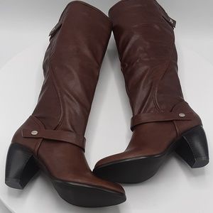 Style & Co Knee-High Cognac Leather Heeled Boots