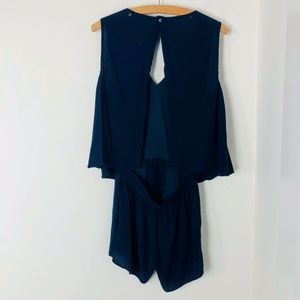 Madewell Overlay Romper Navy Blue Open Back Shorts